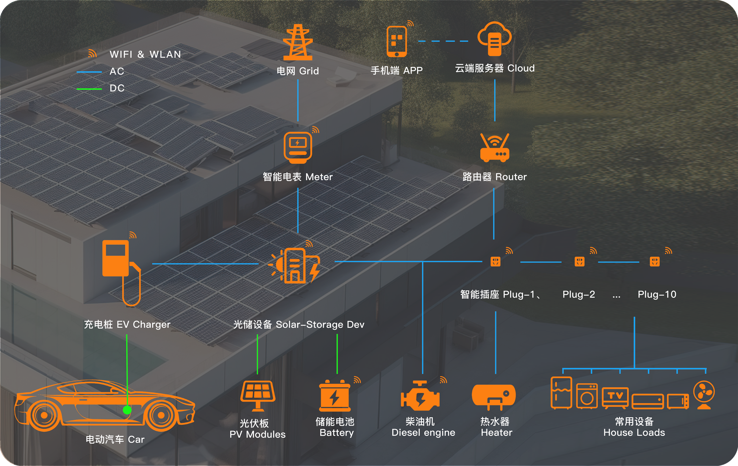 能控云致力于提供云、边、端一站式能源管理解决方案(HA-EMS)。无线电表、储能机、逆变器、负载(智能插座、充电桩、热泵等)、智能家电等能源周边设备,可边缘侧自组网互联互通,实现能源智能、节能的最大化应用。